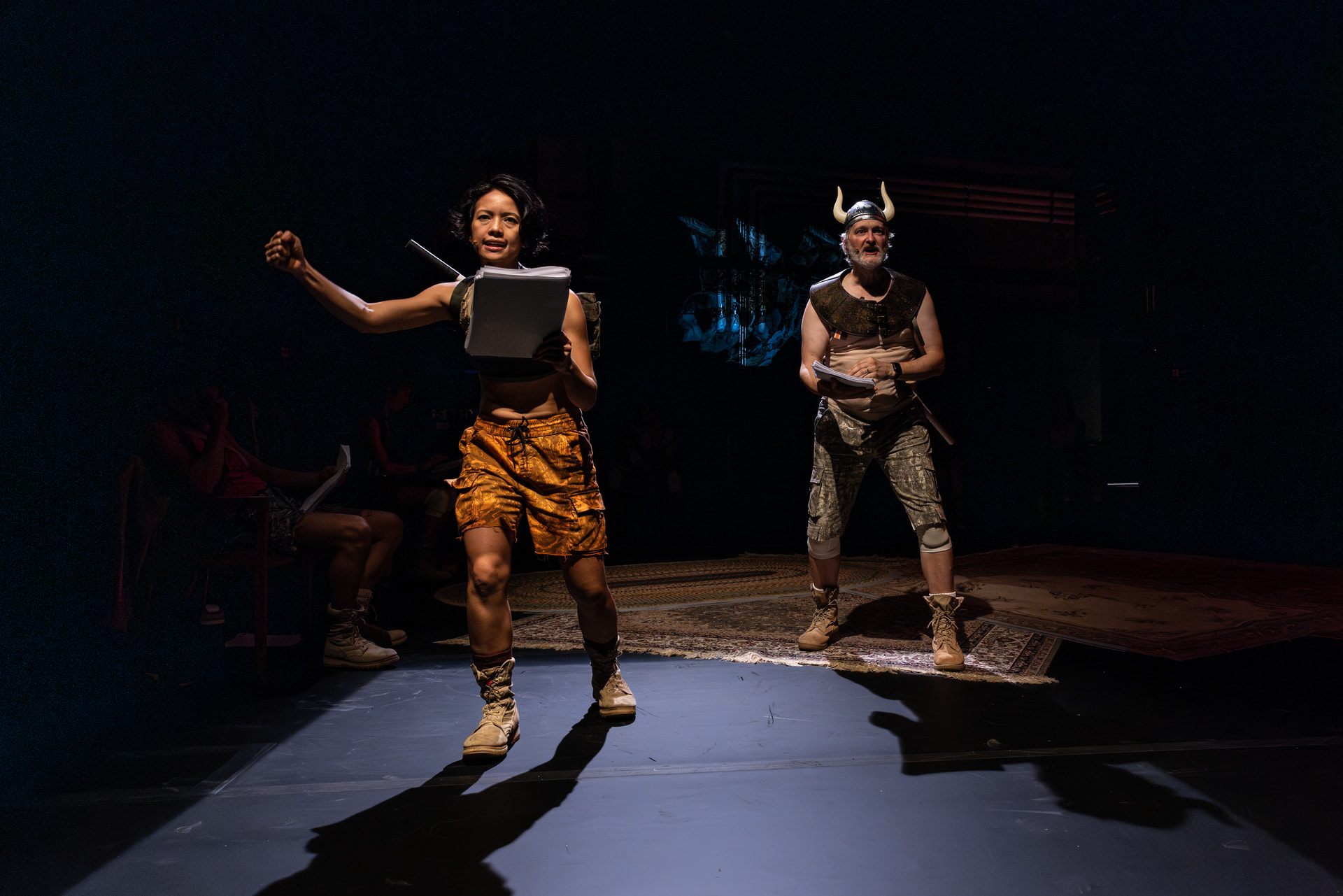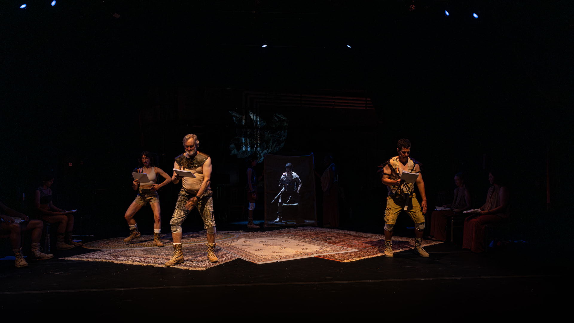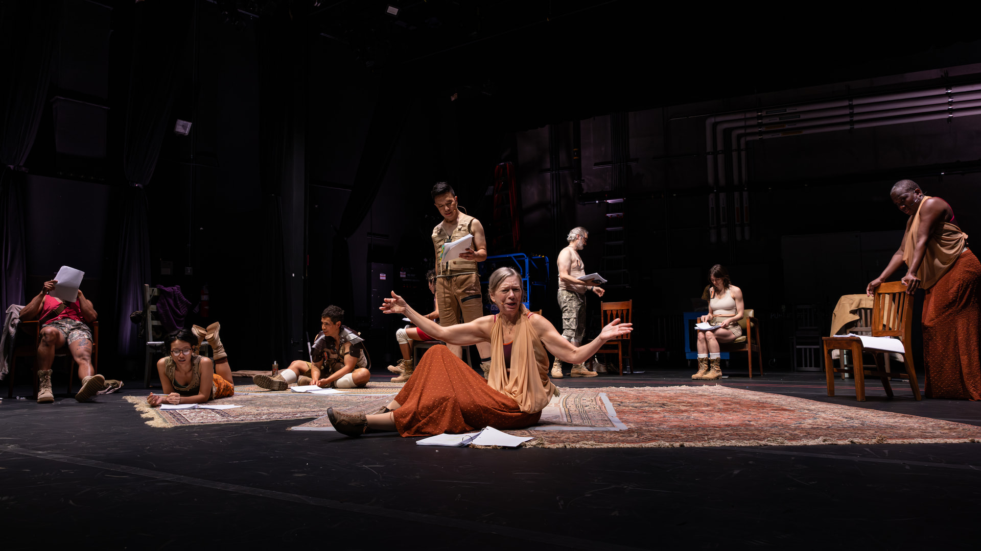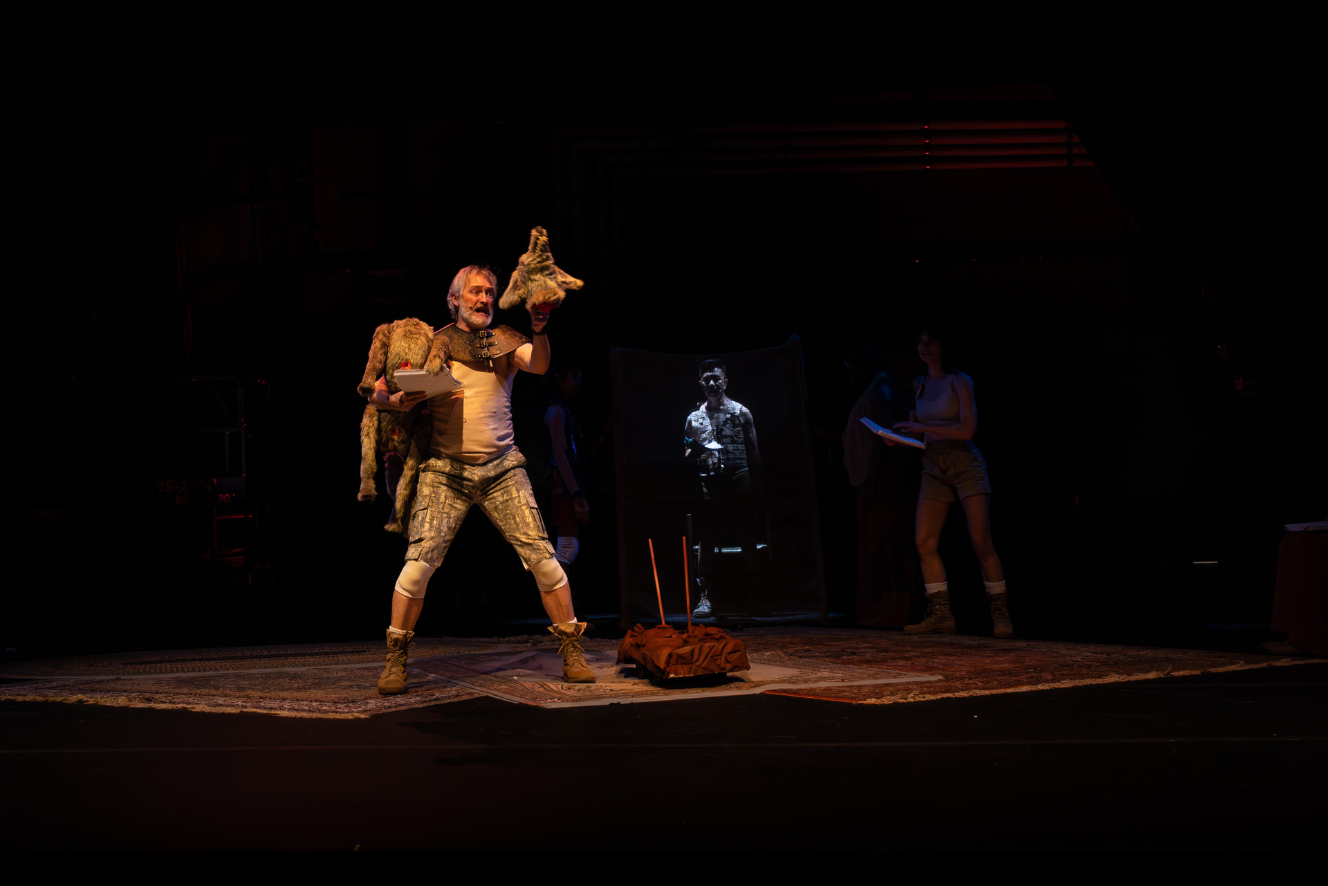 The show is a play-within-a-play with a groups of actors doing an adaptation of Aeschylus’ Seven of Thebes. Their play is set in 2031, in a post-Trump Civil War-torn USA where CA has declared independence and Papa Don’s Barbarians are waging war to bring it back into the fold. The play breaks down when the actors, who are trying to get the show ready for The Getty in hopes they’ll produce it, start talking politics. It’s funny, sad, and very, very pointed. I played a sort of QAnon shaman guy…and had a great time.