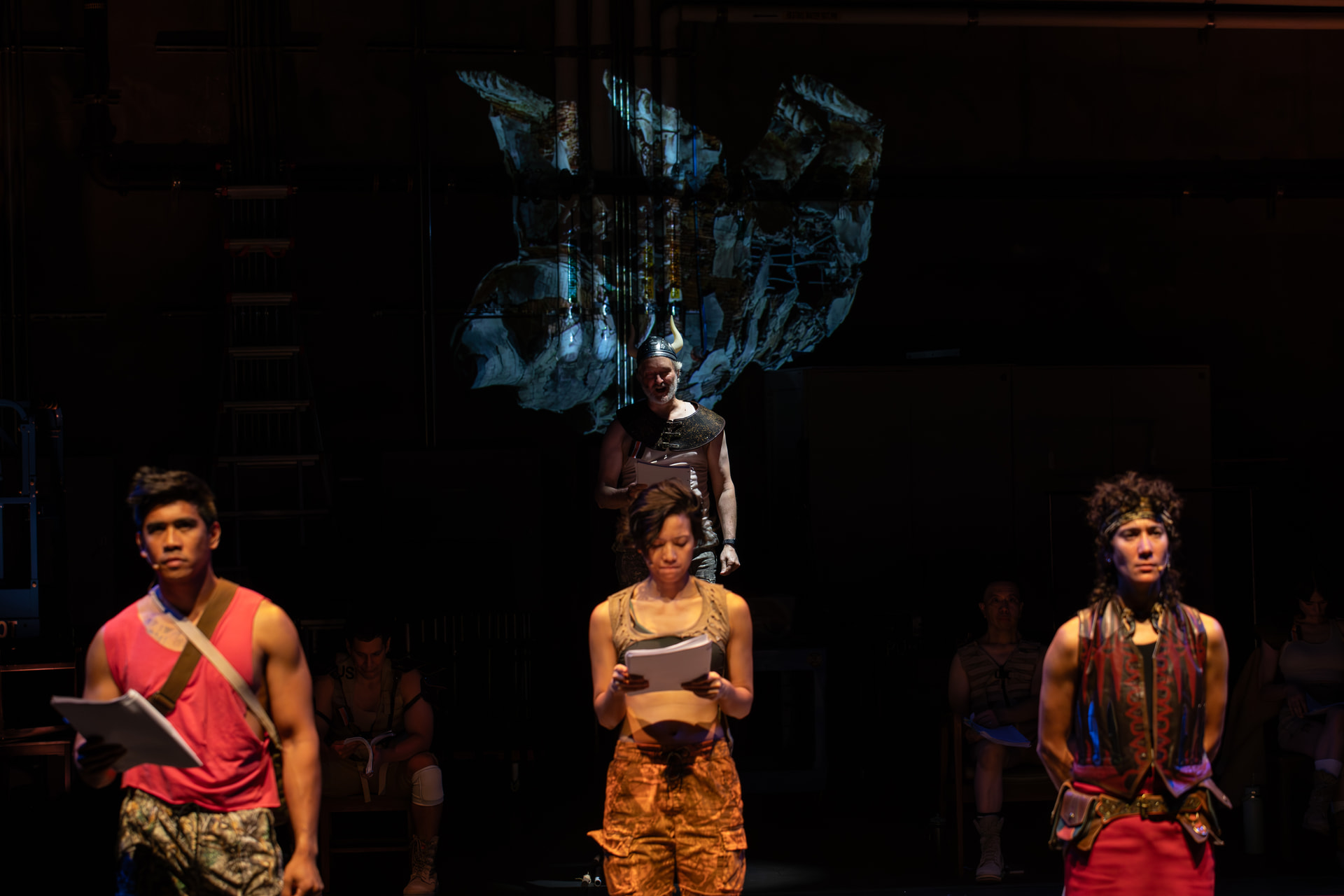 The play is a new one by Boni Alvarez and the reading was directed by Jon Lawrence Rivera. For those that don’t know, a staged reading is basically an elevated rehearsal. There are minimal (if any) blocking, costumes, sets or props, and the actors carry their scripts. These are often done help a producer (The Getty) see the play in a more realistic setting than a simple reading around a table so they can make a better decision on actually producing it. Think of it as a large audition for the play.